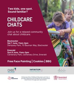 7–8 June 2025, Childcare Chats held in Blackwater and Emerald